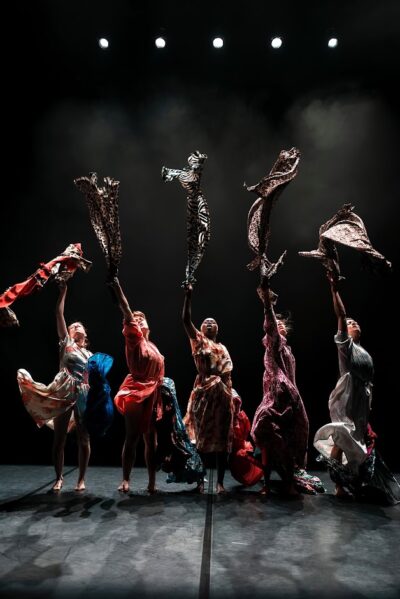 Sur scène, cinq danseuses habillées de robes aux motifs animaux. Des robes qui volent, qui brillent, qui craquent, qui tournent, qui traînent ou tombent. Cinq interprètes qui affichent toute la puissance, tantôt rebelle ou enjouée, de la chorégraphie de Leila Ka. Cinq interprètes qui transpirent parce que vivantes.